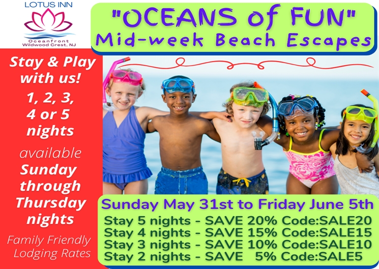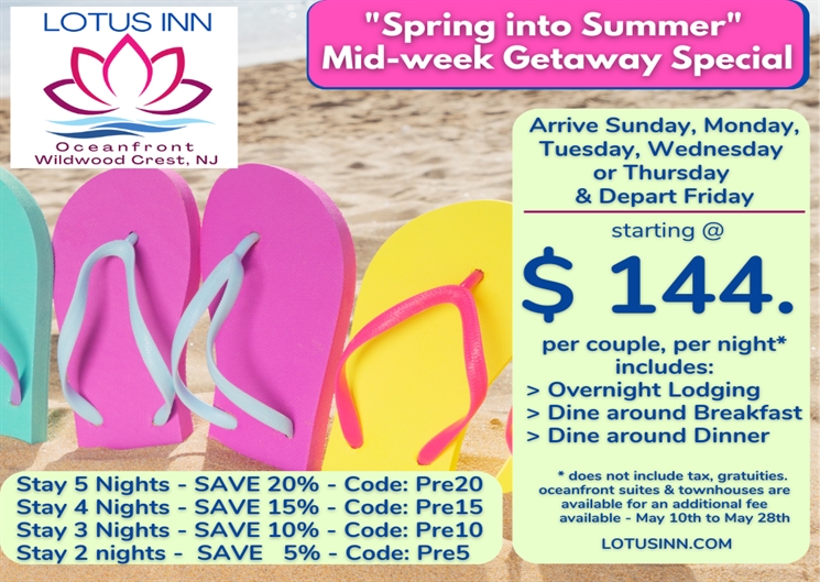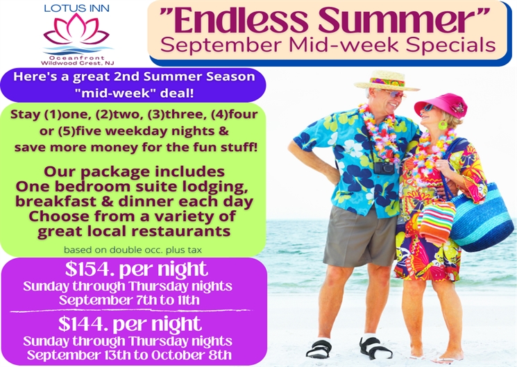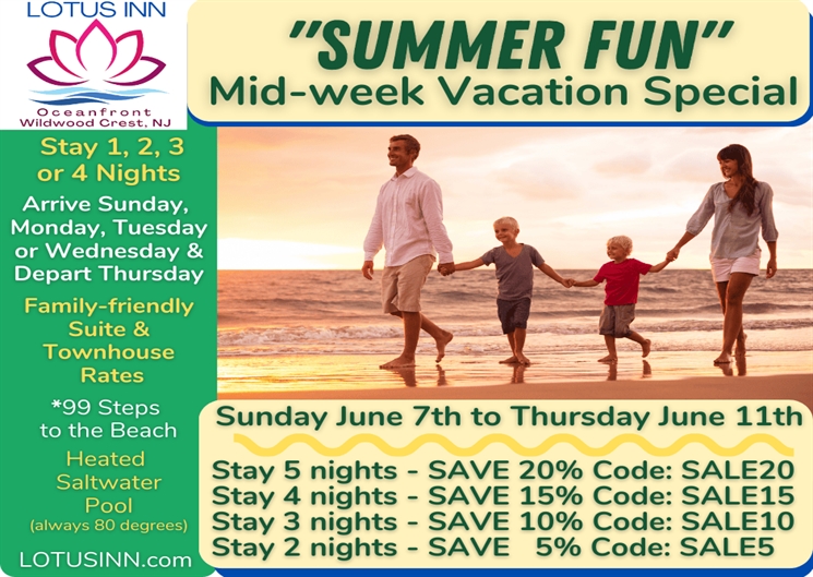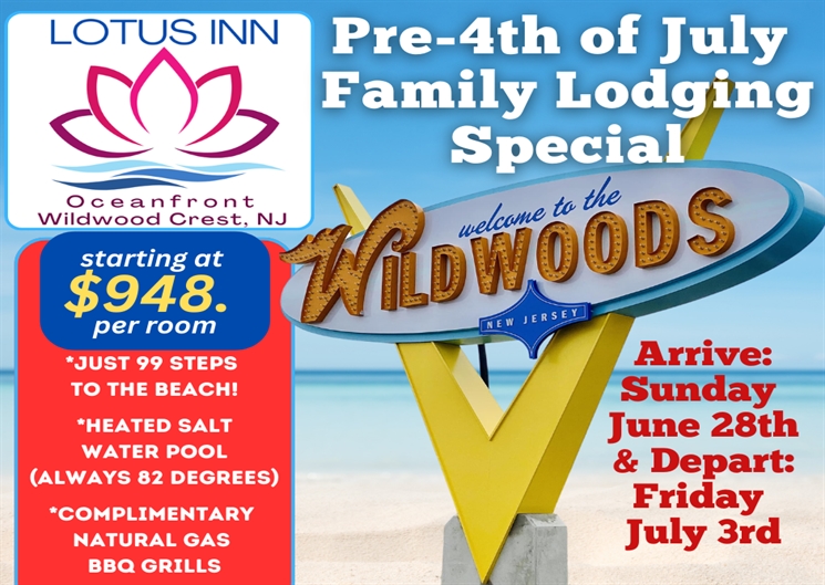 The Lotus Inn has some of the best motel specials in the Wildwood Crest and Jersey Shore area. Check out our amazing Wildwood Crest deals below and get in touch to book your beach escape today!
